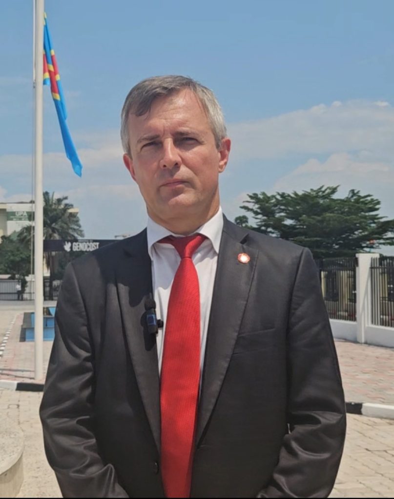 L’Ambassadeur d’Ukraine a effectué une visite officielle au Mémorial du Génocost de Kinshasa en date du 24 nov 2025, un lieu destiné à commémorer les victimes des violences et reconnaître les crimes commis dans le pays.Guidé à travers les différents espaces du mémorial, le diplomate a pu prendre connaissance des dates clés et des réalités douloureuses qui y sont conservées : personnes enterrées vivantes, femmes violées , femmes enceintes éventrées tuées,enfants et hommes massacrés. Le site offre un parcours sobre mais profondément marquant, rappelant l’importance de la mémoire face aux atrocités.Après la visite guidée, l’ambassadeur s’est rendu sur l’esplanade dédiée aux victimes pour déposer une gerbe de fleurs, accompagné de sa délégation, observant un moment de recueillement chargé d’émotion.